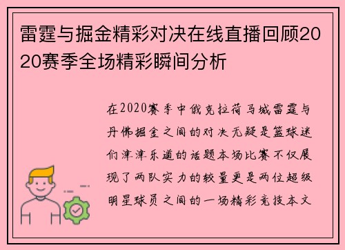 在足球的世界中,曼联与利物浦的对决如同一场盛大的盛典,吸引着无数球迷的目光。这两支球队不仅在历史上有着辉煌的成就,而且他们之间的对抗也总是充满了激情与悬念。本文将围绕“曼联与利物浦精彩对决完整视频直播尽在这里不容错过”这一主题,从多个角度分析这场比赛的重要性以及观看直播的必要性。我们将探讨比赛历史、球员表现、战术分析及直播体验等方面,帮助读者更好地理解这场经典对决。同时,通过详细的信息和数据,让每...